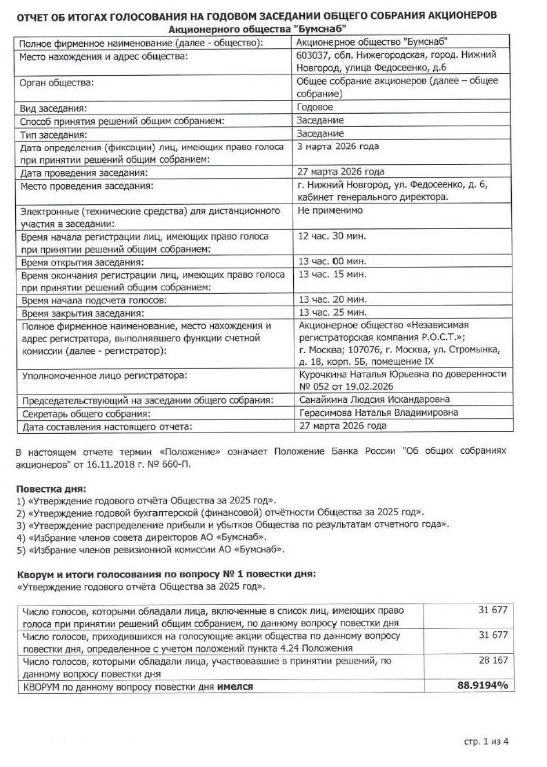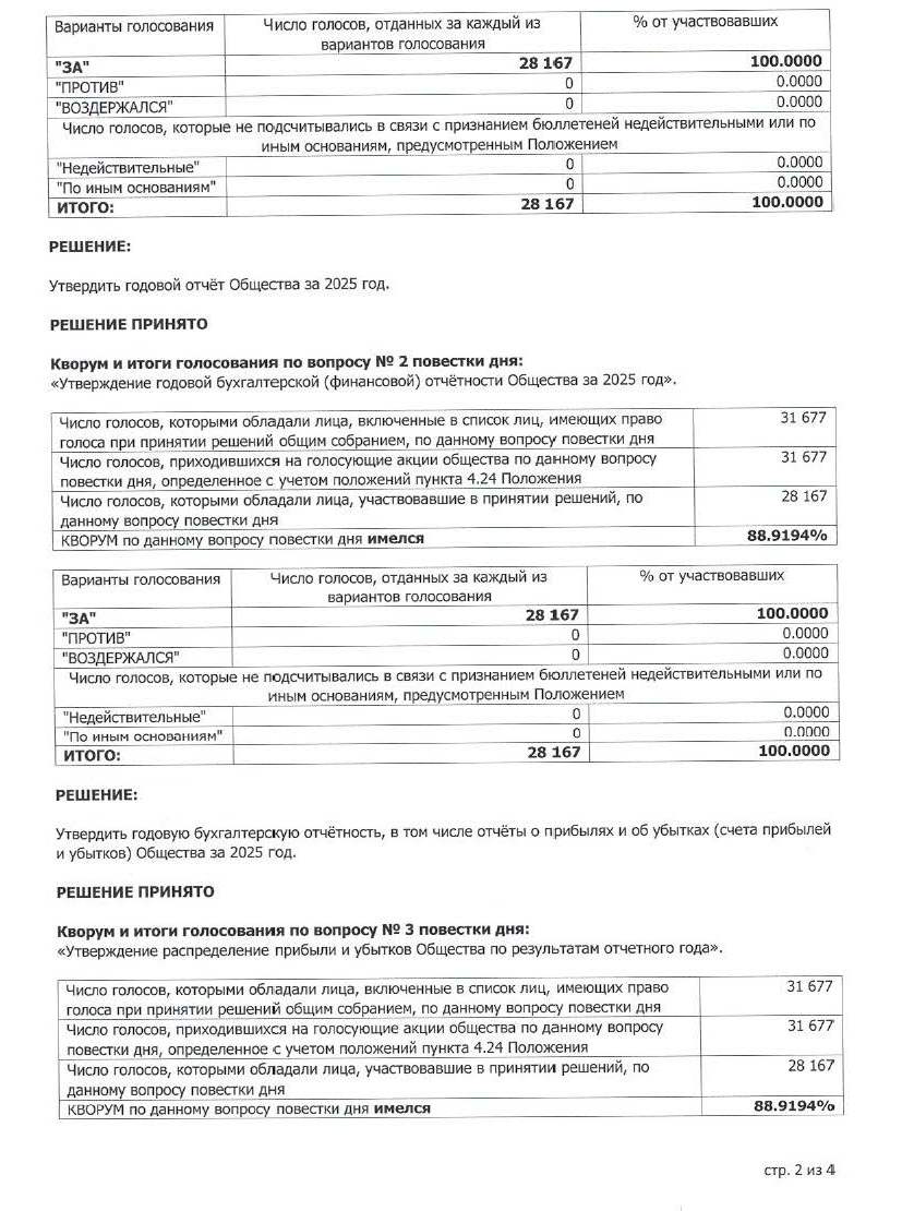 Опубликован отчёт об итогах голосования на годовом общем собрании акционеров (2026г.)